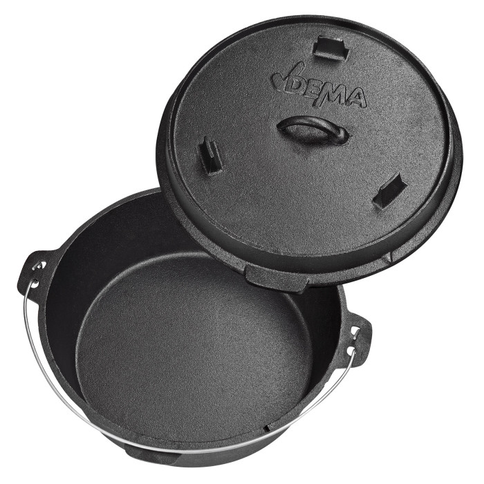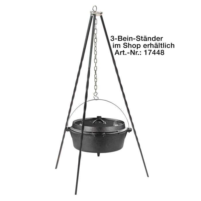 Qu'il s'agisse de viande, de rôtis, de soupes, de ragoûts, de légumes ou de pain, la préparation au feu de camp, sur le gril pivotant ou sur la braise sera toujours un moment fort. L'absorption et la diffusion régulières de la chaleur par la fonte lourde garantissent une réussite optimale et une expérience culinaire unique.